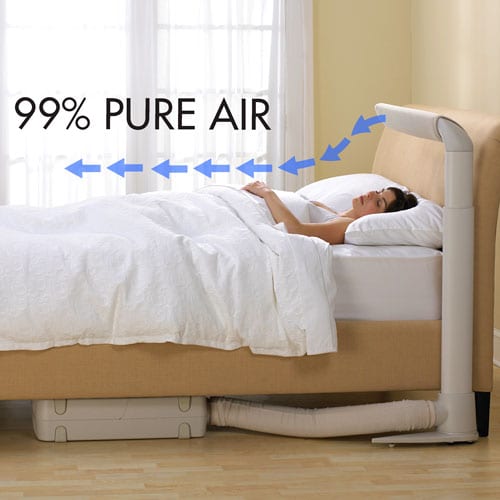 If you are one of many whose allergies prevent you from getting a good night sleep then the Pure Air Sleep System could be the solution you've been dreaming of. Designed specifically for allergy sufferers, the Pure Air Sleep System couples HEPA filtration with a unique design that in just 12 seconds creates a sleep zone of 99% purified, allergen free air delivered directly where you need it when you sleep.