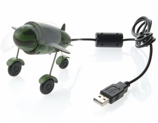 USB desk fan shaped into the chassis of a classic Air Force Plane.
