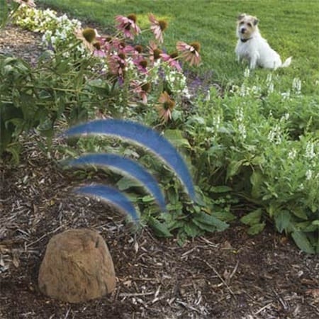 This pet yard barrier features a waterproof rock-look transmitter that sends out a signal to the included collar you place around your dog's neck. If he comes within 16 feet of the Outdoor Pet Boundary, a harmless electrical sensation will remind him to stay away.